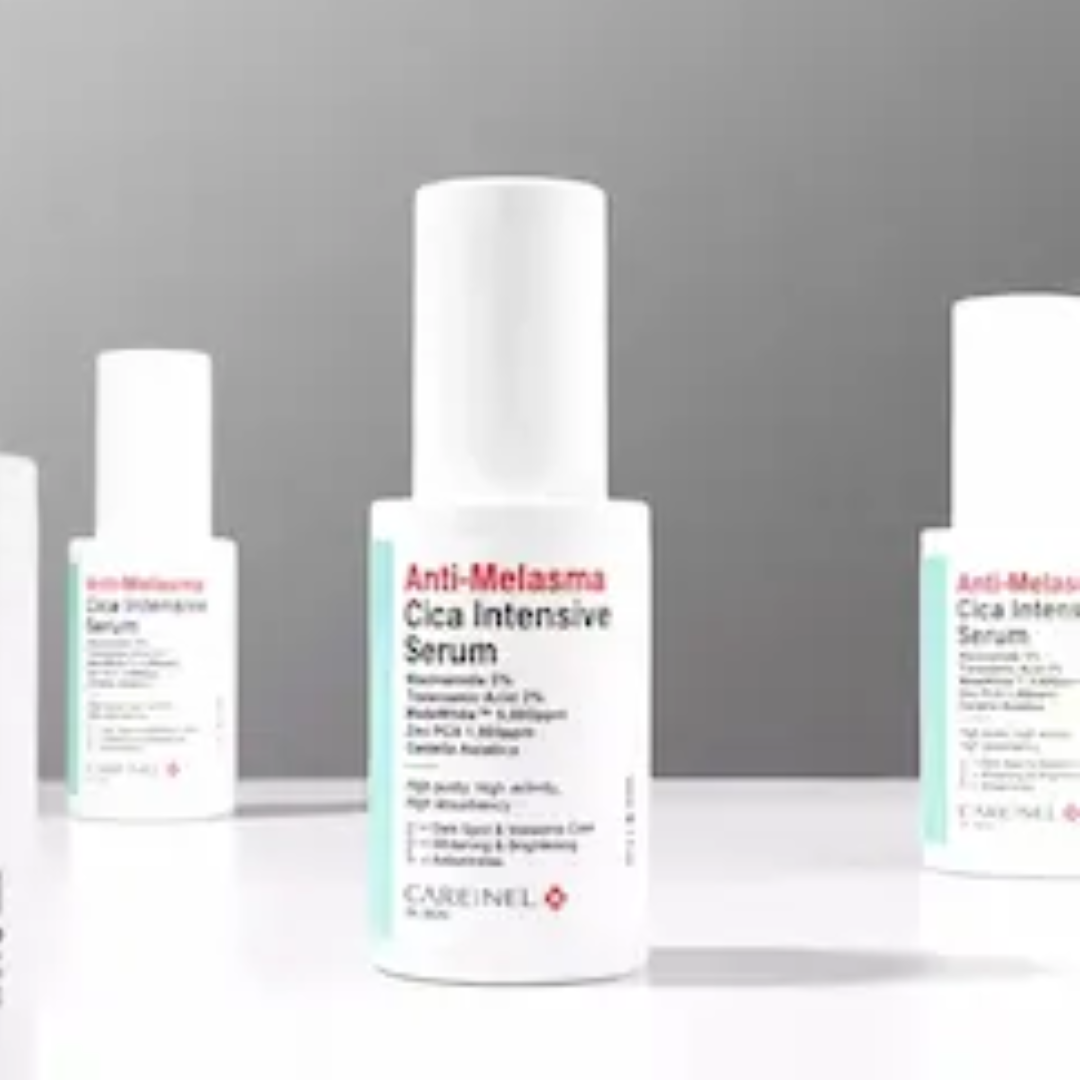 Brighten and even out your skin tone with the Carenel Anti-Melasma Cica Intensive Serum. This potent serum targets melasma, blemishes, and uneven pigmentation while keeping skin calm and moisturized.